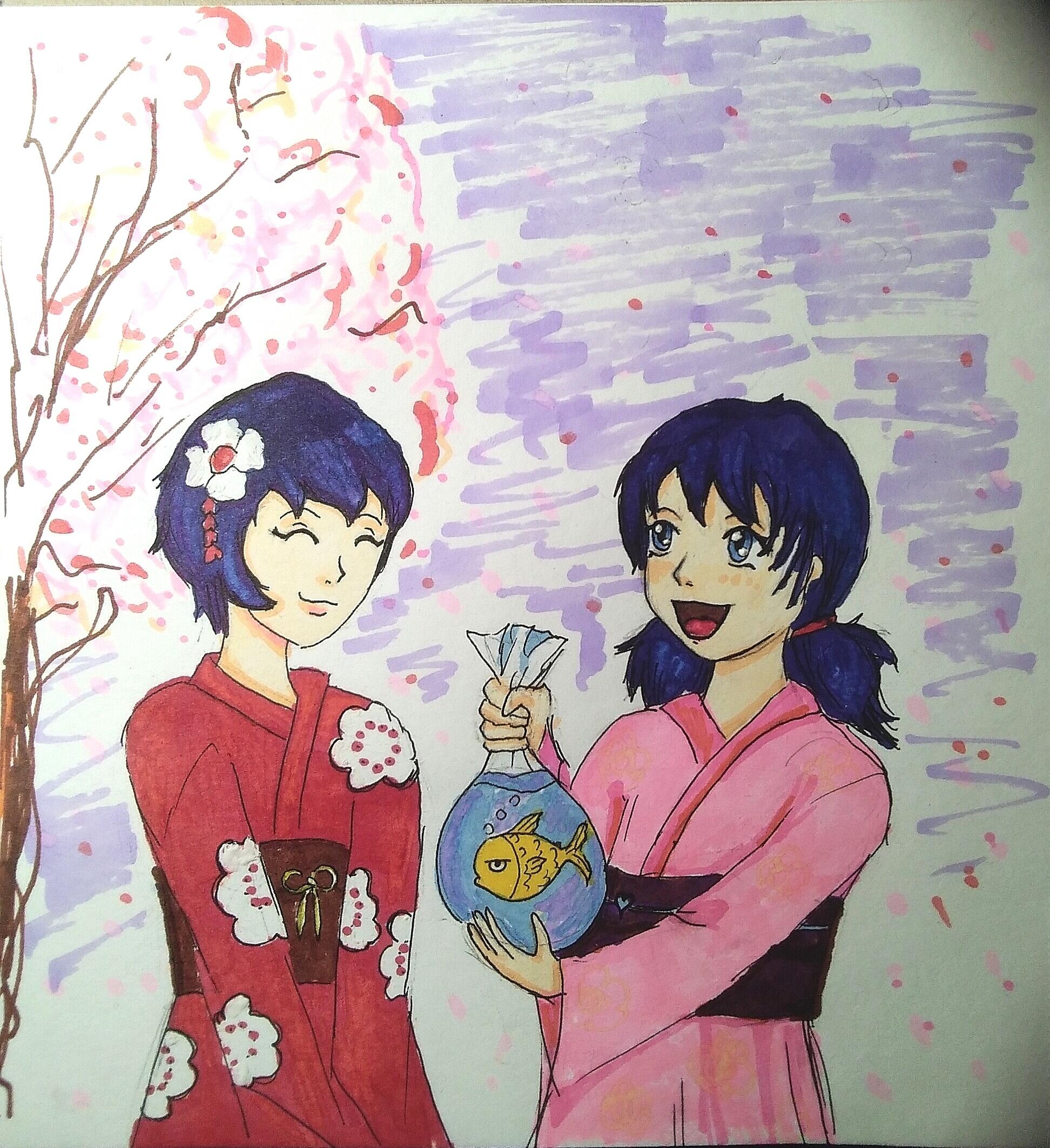 Арт Кагами и Маринетт на японском фестивале Хоси-мацури